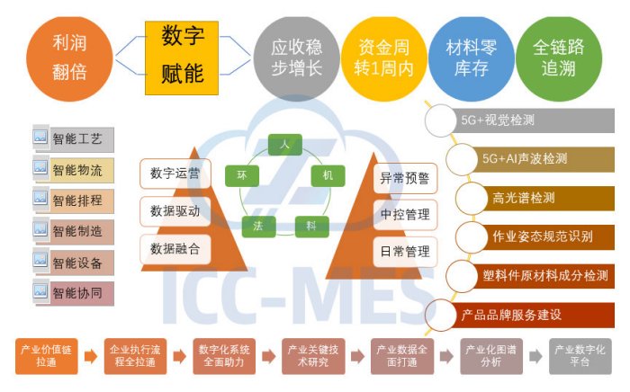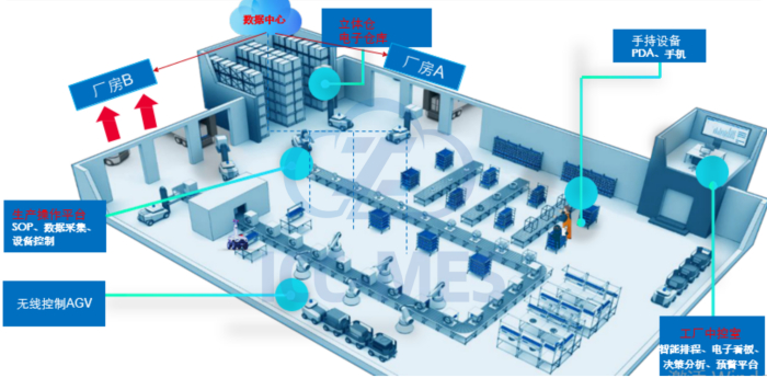 实现智能APS排程、MES、SCADA设备互联、PLC自动采集、WMS、QMS、AGV、WCS、API接口、手机APP异常预警、产品工序及批次管理、产品全链路追溯、可视化中控等综合数字化业务场景应用。